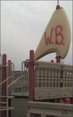 set vandalised, with the words "Woodbridge Boys" or "WB".