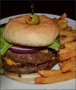 a burger with two voluptuous-looking beef patties layered with American cheese. Quite the