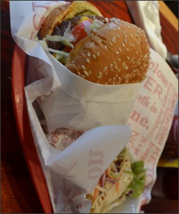 Gourmet Cheeseburger with a side of coleslaw. Since they offer bottomless fries when you
