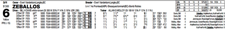at Zeballos's lines (used from files from Brisnet, TrackMaster).