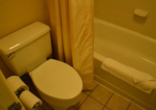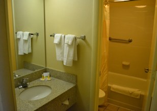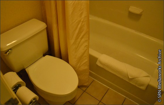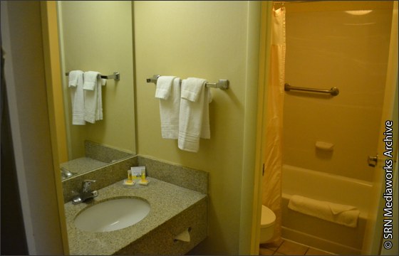 issue. The shower and toilet are separated from the sink, making it convenient for multiple guests,