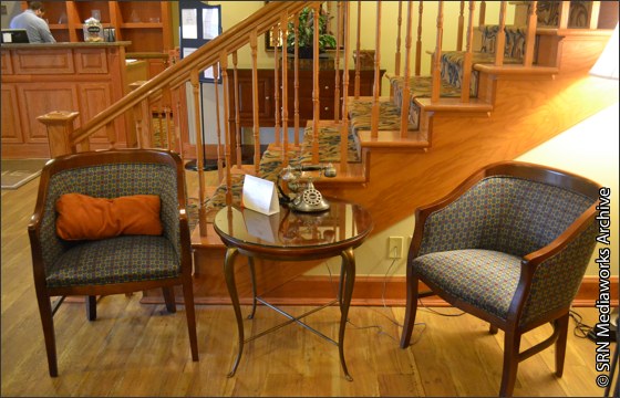 defining detail. Even nicer is the beverage service with cookie jar in the lobby that guests can