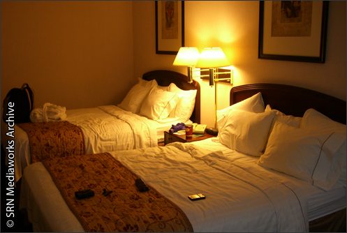 queen-sized beds and a good-sized television as well.