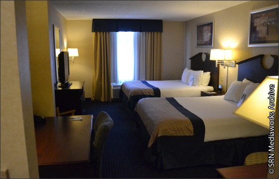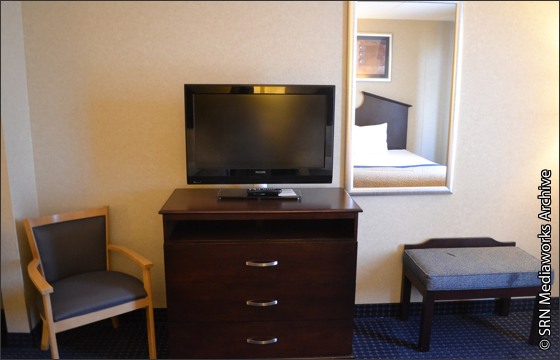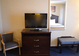 Completing the room was a simple desk, widescreen television with a limited selection of channels