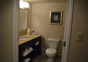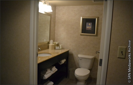 The washroom by stark contrast is noticeably disappointing, since apart from the fancy vanity and