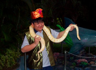 This little creature, who happens to eat chicken, can be found at Sentosa Island, Singapore's "theme park". My fat face is the result of the alien feeling of handling the snake.
