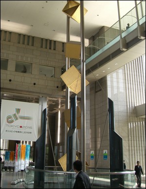 Is it Zeus throwing down lightning bolts onto what looks like the Tokyo Tower?